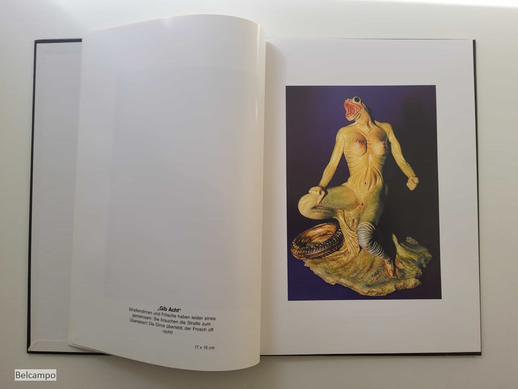 Vollmar, Lothar Michael. Phantastische keramik - VollmArt Zum Thema „Leben" - Phantastische Skulpturen. Much. Ohne Verlag und Jahr. Ohne Seitenangabe. Pappband 4° (30 x 21,5 cm.) Widmung, signiert, mit Broschüre zum Thema Leben, Flyer (Abb.4). Mit einige Interpretationen zum Werk von Psychologe U. Kobbe (Abb.13). Schönes Exemplar.