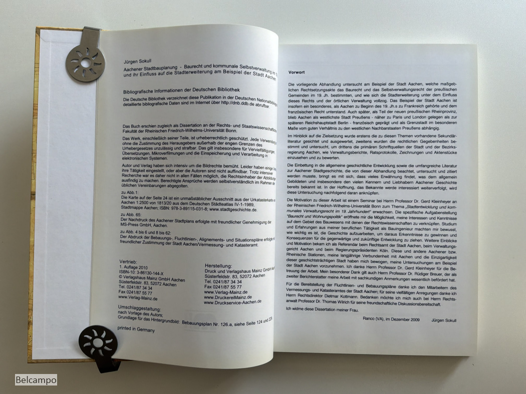 Sokull, Jürgen. Aachener Stadtbauplanung. Baurecht und kommunale Selbstverwaltung im 19. Jahrhundert und ihr Einfluss auf die Stadterweiterung am Beispiel der Stadt Aachen. Aachen. Verlagshaus Mainz GmbH, 2010. XVII, 243 S. 4° (30,5 x 21 cm.). Kartoniert. Stempel mit Name und Adresse auf Vorsatz. Schönes Exemplar. Selten