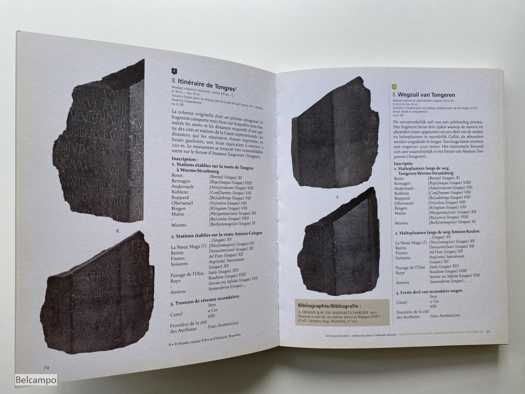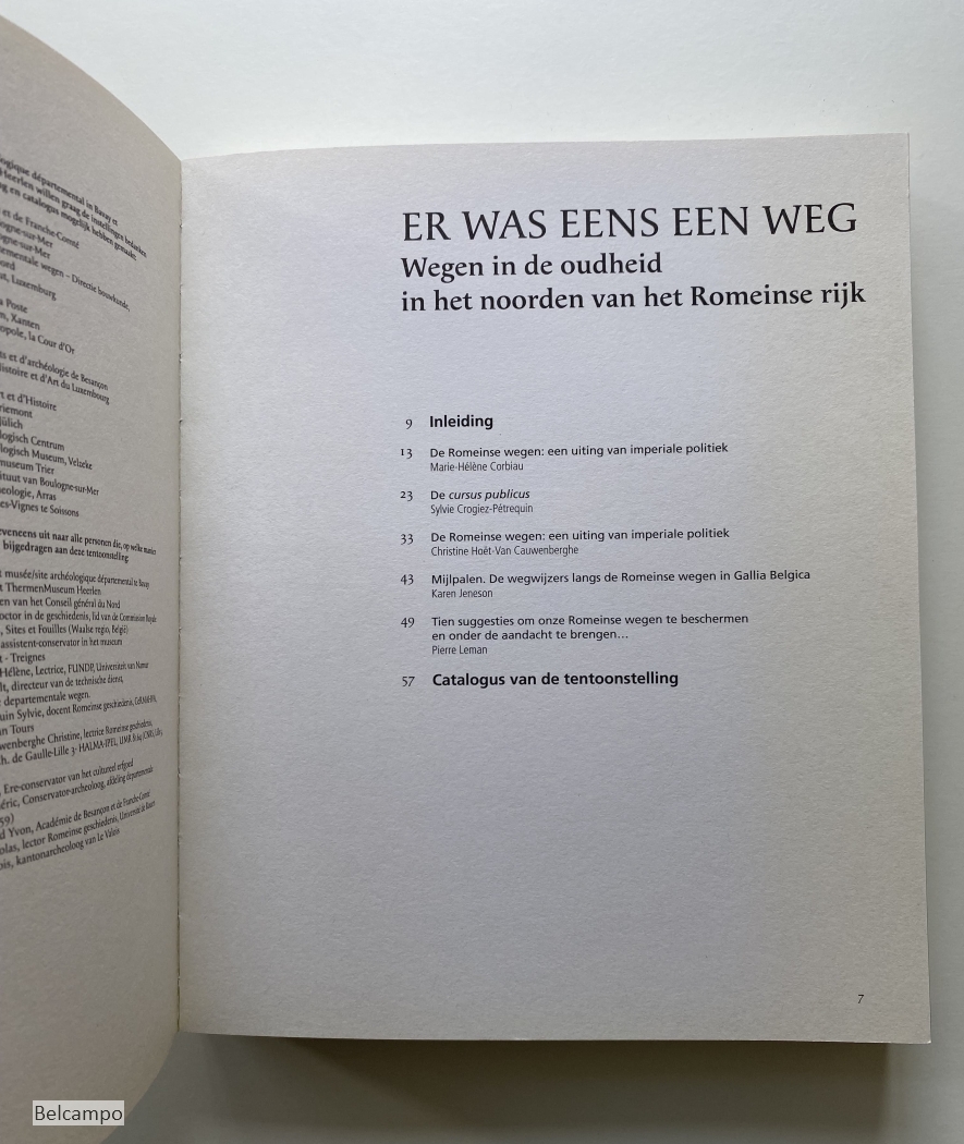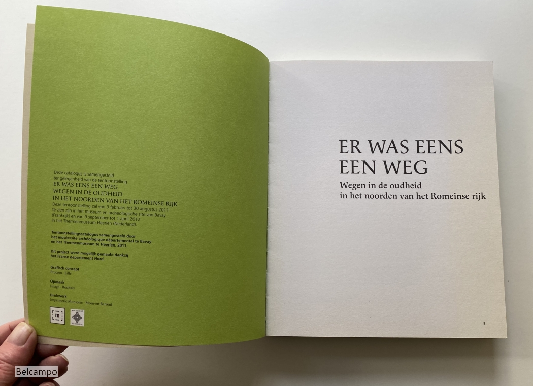 Bollard-Raineau, Isabelle, and Frederic Loridant (Preface). Er was eens een weg. Wegen in de oudheid in het noorden van Het Romeinse Rijk. ( Il Etait une Voie: Itineraires Antiques au Nord de l'Empire Romain). Bavay-Bagacum: Musee/Site d'Archeologie. Thermenmuseum Heerlen. 2012. 151 p. en 55 p. (20 x 24 cm.). Paperback. Leesvouwen in rug (afb. 3), verder goed exemplaar.
